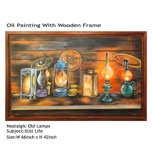 SHIRINS Nostalgic Old Lamps Oil Painting Wooden Frame Still Life Realism Style