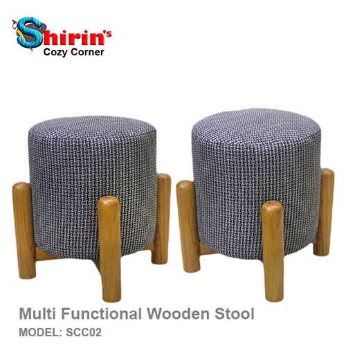 SHIRINS SCC02 Multi Functional Wooden Stool Natural Color Lacquered Polish Stool