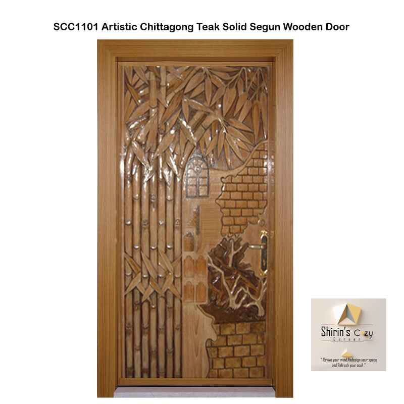 SHIRINS SCC1103 Nature Story Artistic Chittagong Teak Solid Segun Wooden Door